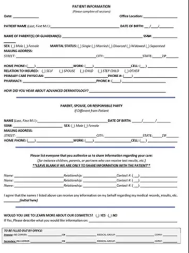 Advanced Dermatology & Skin Cancer Specialists have strict privacy guidelines in place. They will not use your personal information for any purposes other than to understand what you need from us and to contact you. We do not sell any information in any form to any other company. Your information is strictly used by Advanced Dermatology & Skin Cancer Specialists and their staff to ensure we provide you with the most complete customer service.